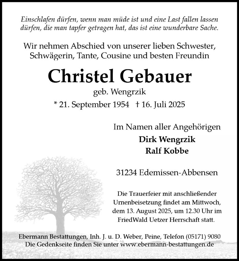 gestorben am 16. Juli 2025 in Peine