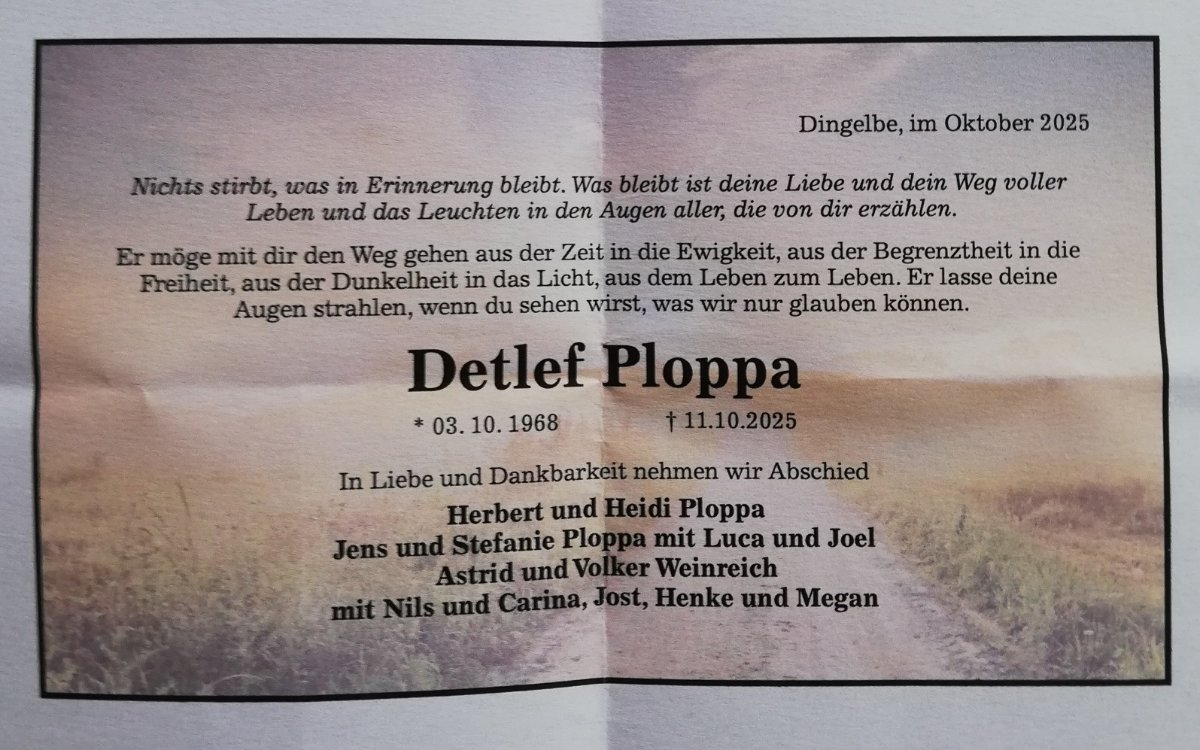 In tiefer Betroffenheit und in stillem Gedenken an unseren lieben Kollegen in der Ferne