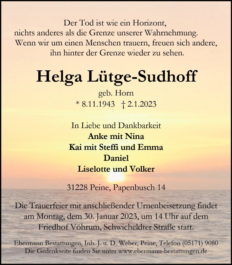 Liebe Helga. Vor ein paar Tagen wärst du 81 geworden. Wir vermissen dich und denken so oft an dich. Du warst so eine tolle Mutter, Schwiegermutter und Oma. Danke für deine liebe. Dein Kai