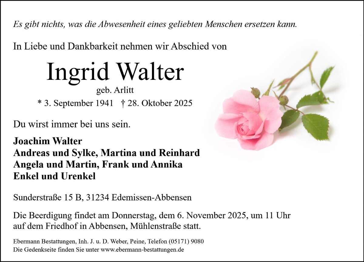 Ingrid Waltergestorben am 28. Oktober 2025