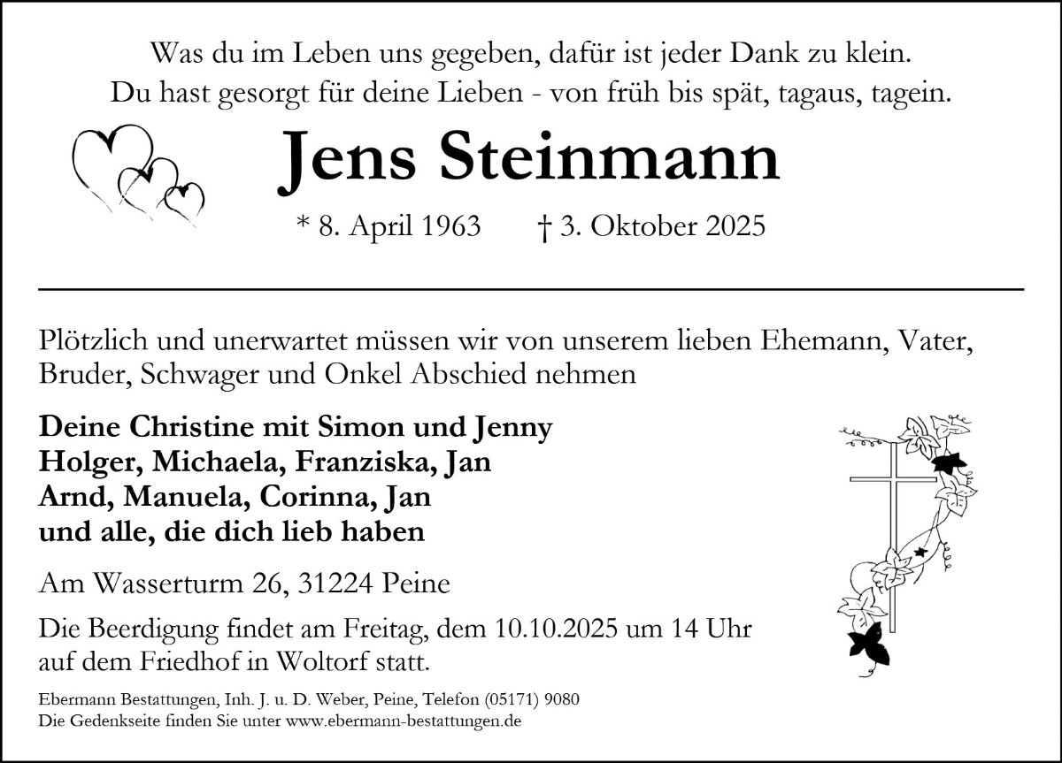 gestorben am 3. Oktober 2025 in Peine